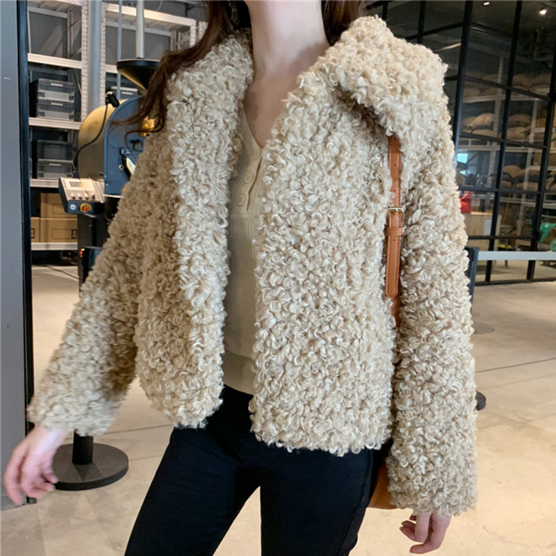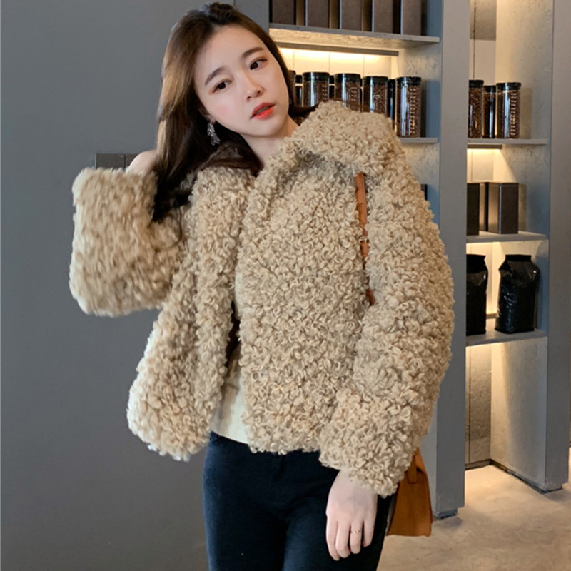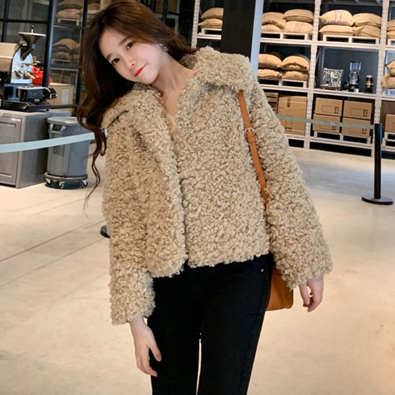 簡約純色羊羔毛外套秋冬女裝2018新款港風翻領長袖開衫休閑上衣潮