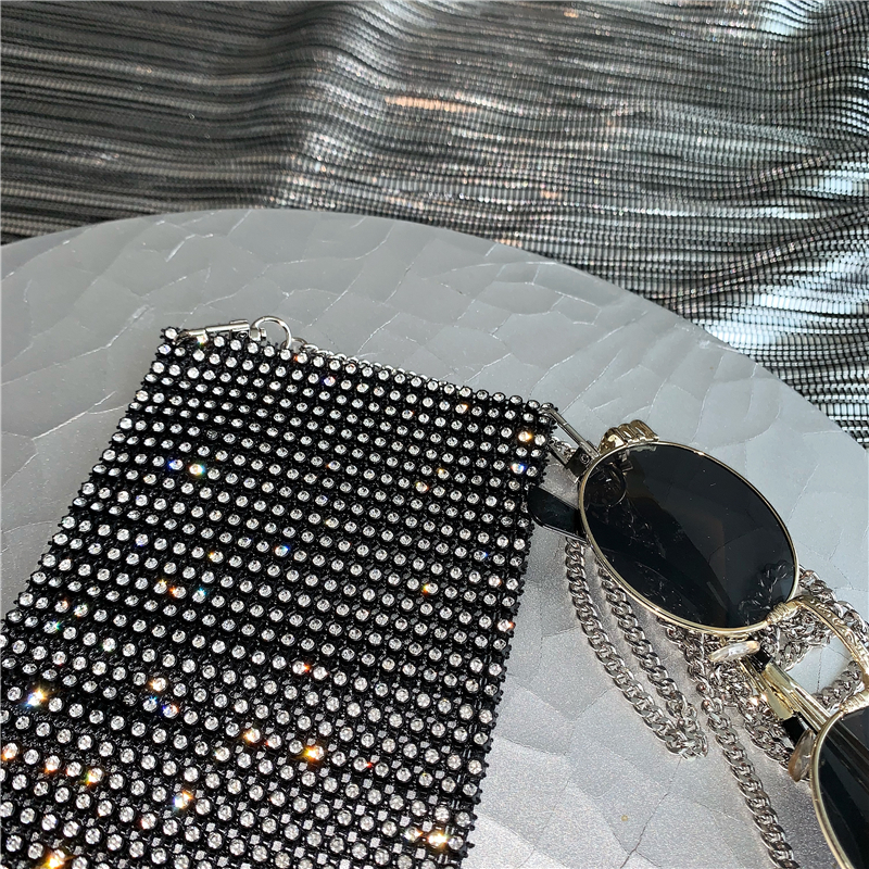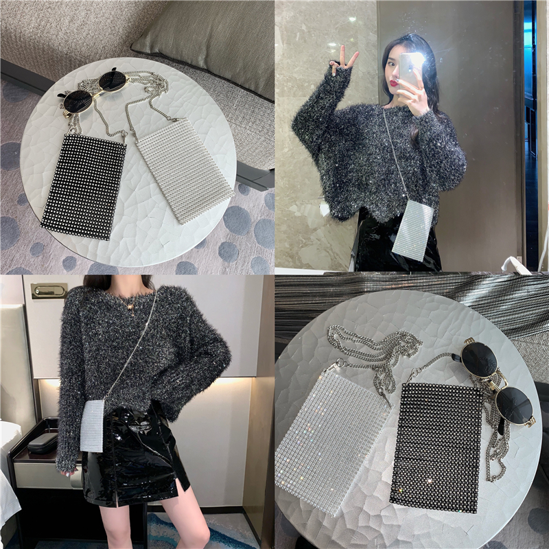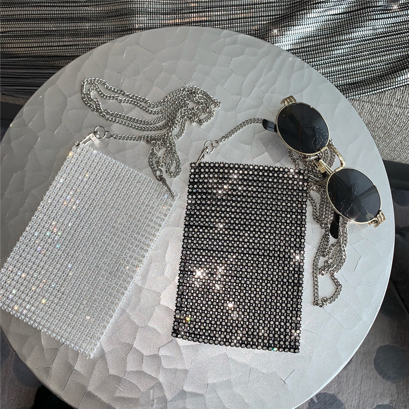 / 新款韓版網紅風百搭閃閃單肩斜跨手機包休閑亮鉆女包時尚鏈條小包