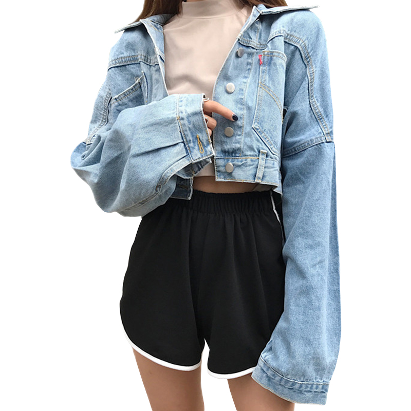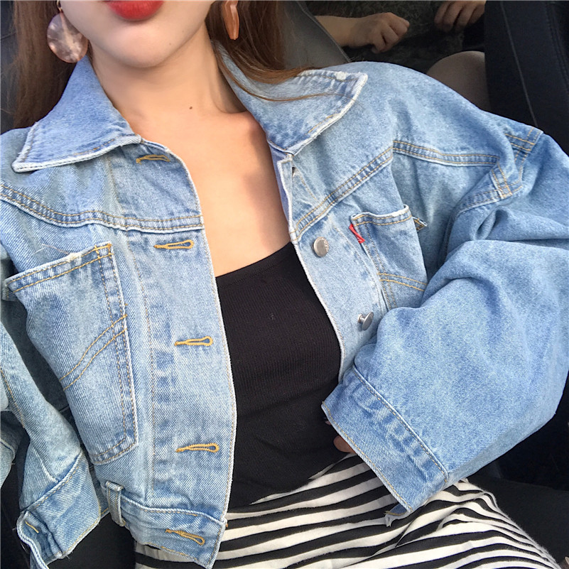 / 夏季新款女裝蝙蝠袖排扣寬松顯瘦學生百搭短款長袖牛仔開衫外套