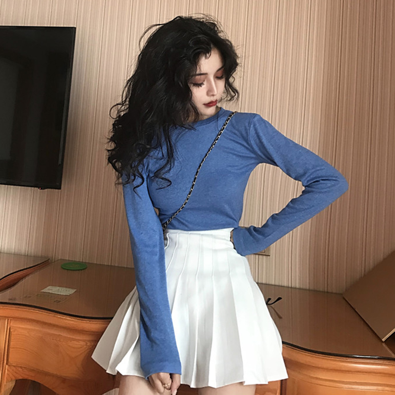 / 2018秋季新款黑色顯瘦圓領緊身上衣女 白色打底衫女長袖t恤女秋冬