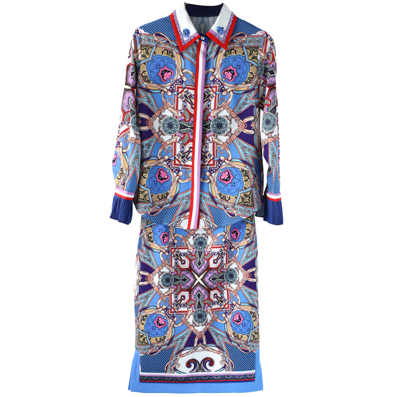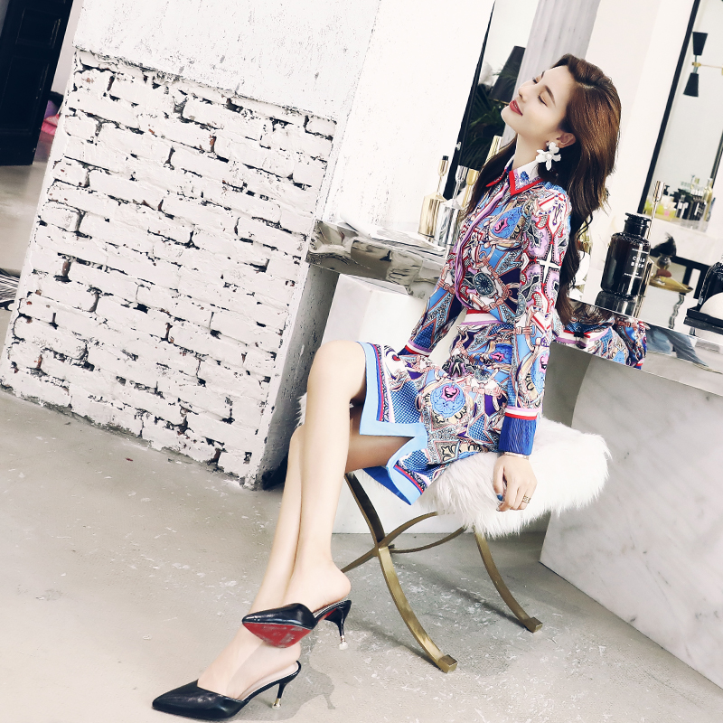 名媛秋裝2018新款女裝氣質休閑兩件套時尚襯衫印花裙子半身裙套裝