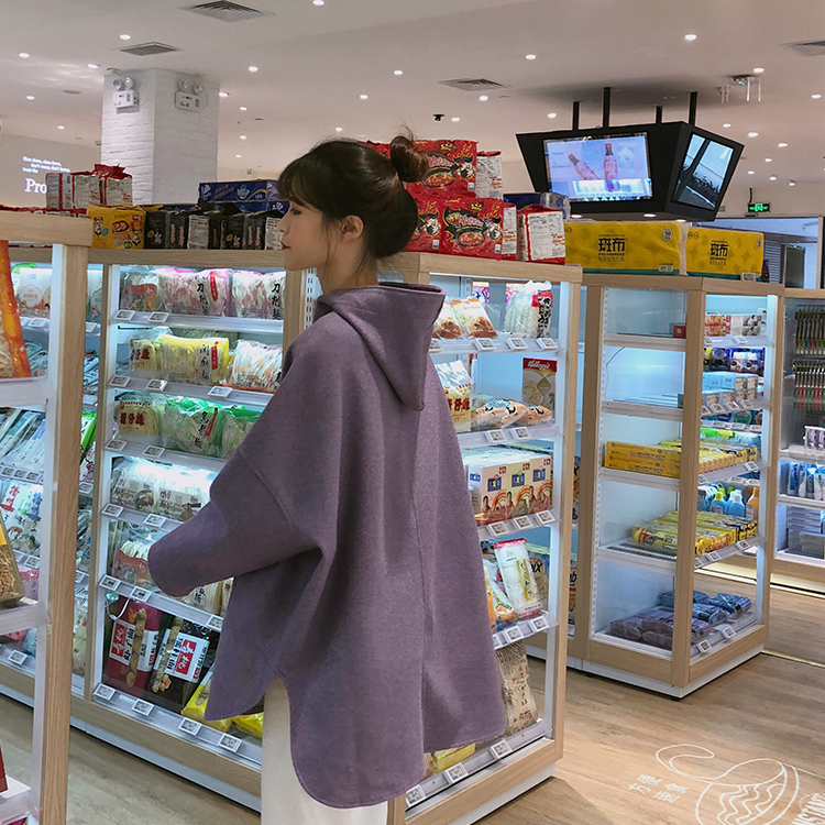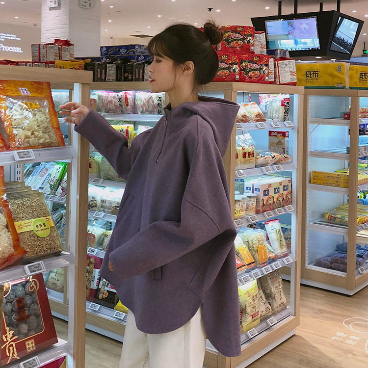 / 2018新款秋冬女裝韓版中長款慵懶風寬松連帽超火呢子衛衣上衣外套