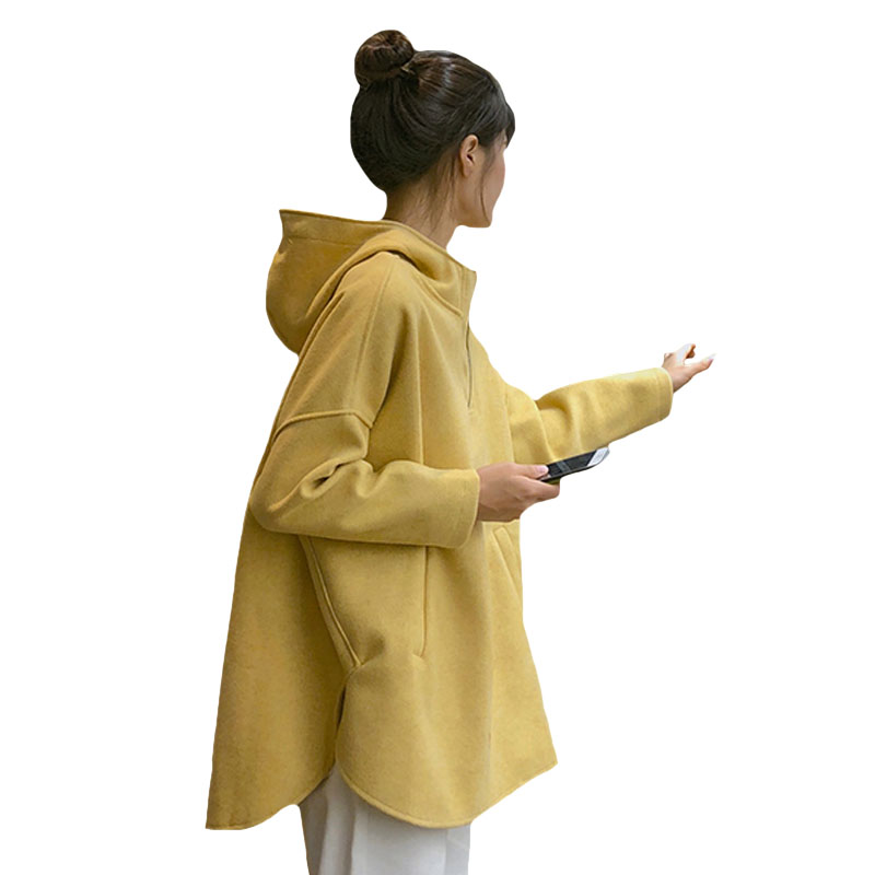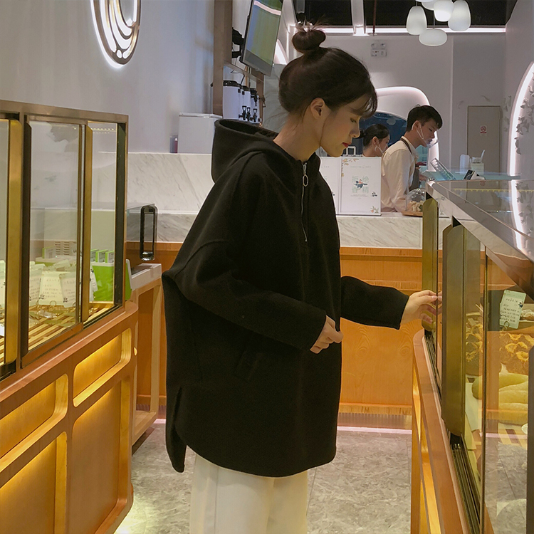 2018新款秋冬女裝韓版中長款慵懶風寬松連帽超火呢子衛衣上衣外套