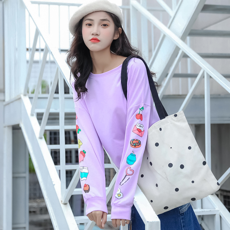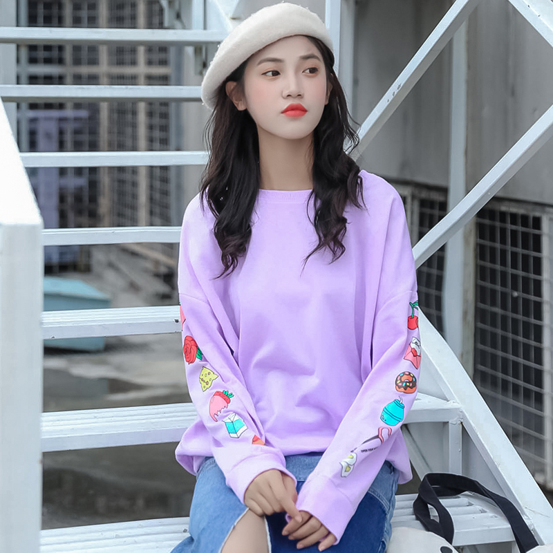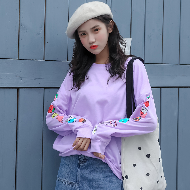 / 原宿風卡通印花套頭衛衣女秋冬裝2018新款韓版學生寬松薄款外套潮