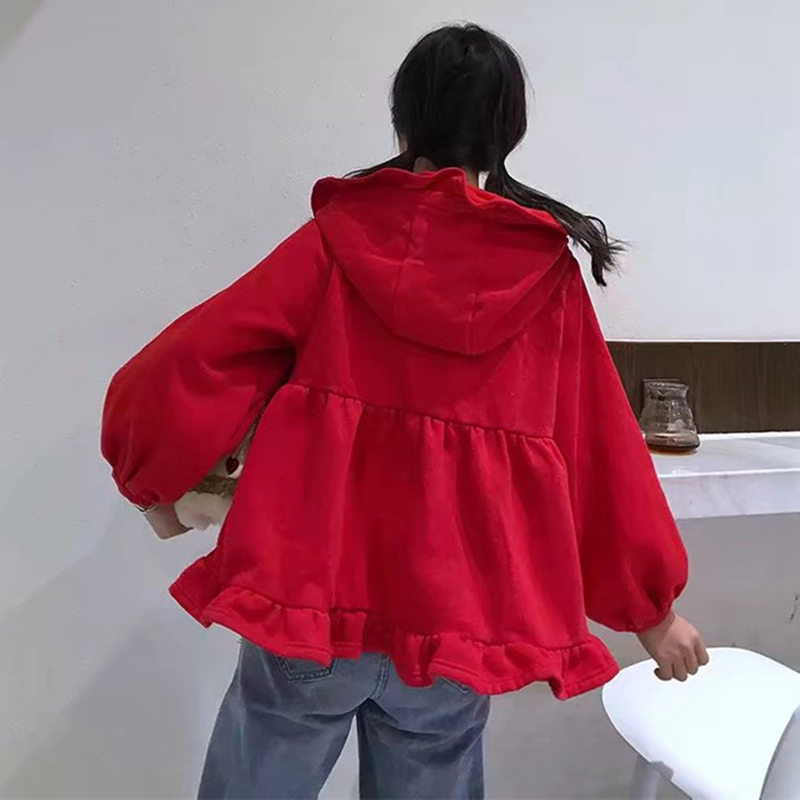 / 可愛少女泡泡長袖加絨衛衣秋冬裝2018新款學生甜美荷葉邊連帽外套