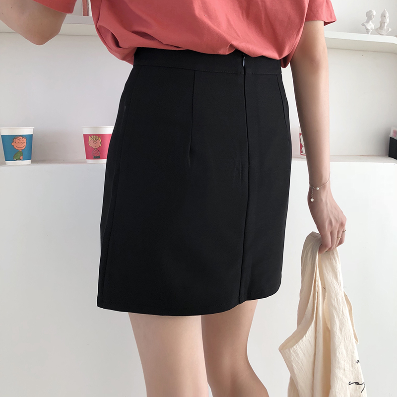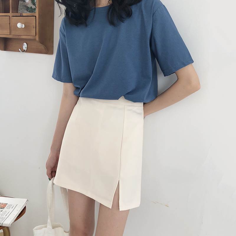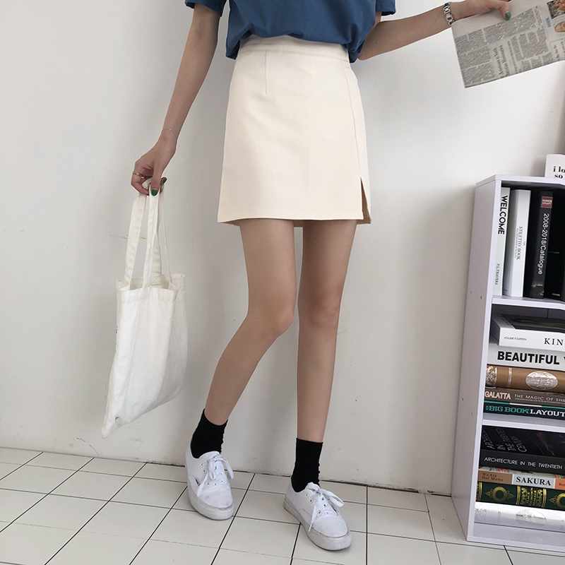/ 少女純色A字短裙潮夏季2018新款女裝修身百搭開叉高腰包臀半身裙