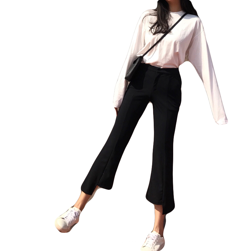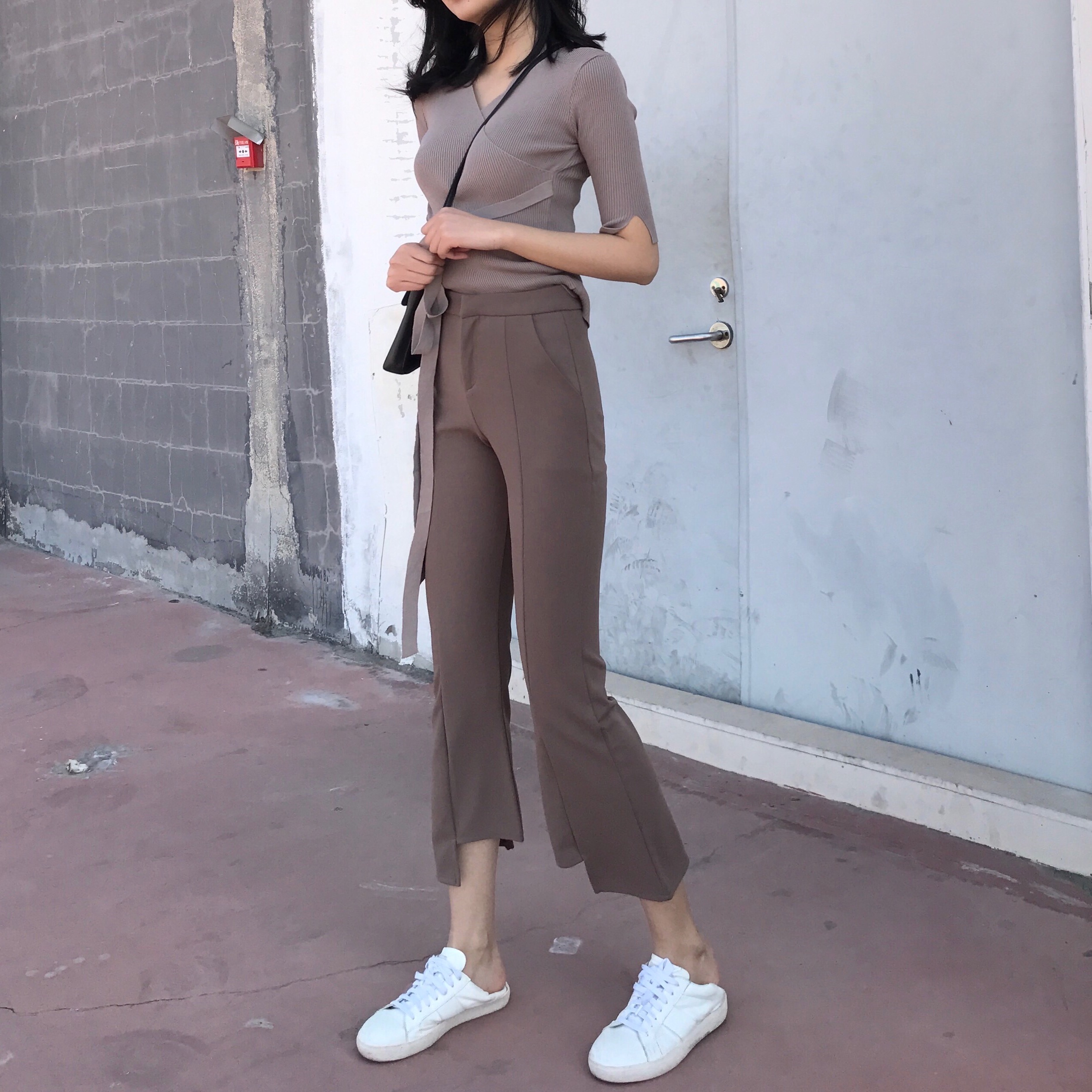 褲腳邊的不規則裁剪增添一絲活潑靈動感,露出顯瘦的腳踝,洋氣加分