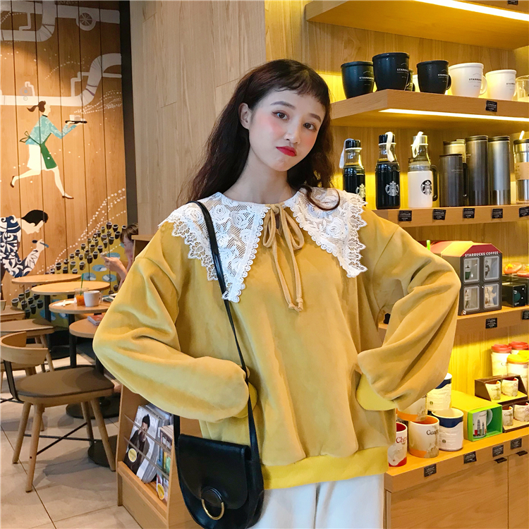 拼接的蕾絲花邊領增添了甜美又俏皮的味道