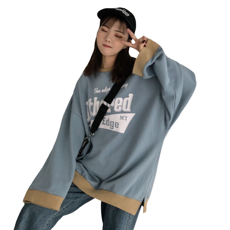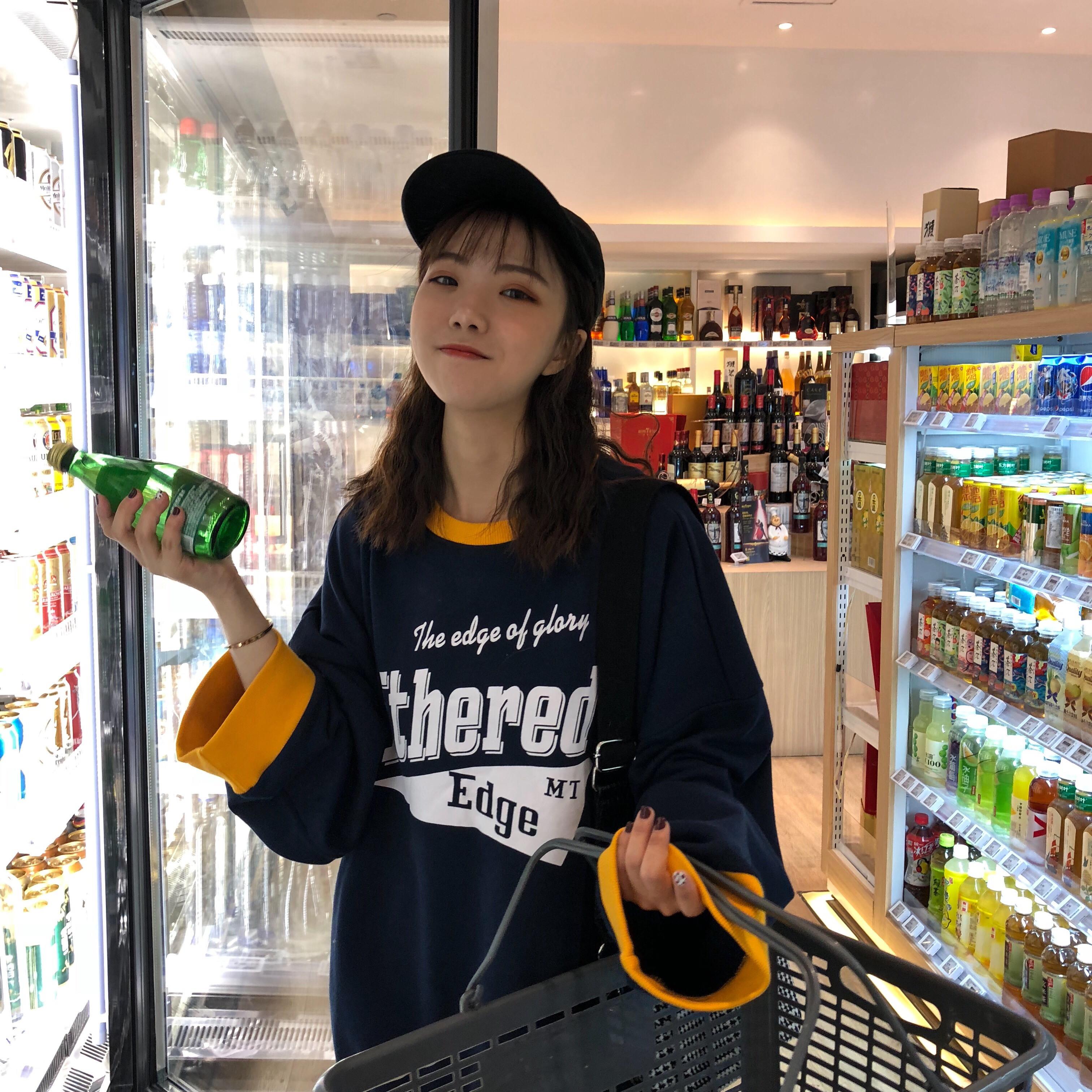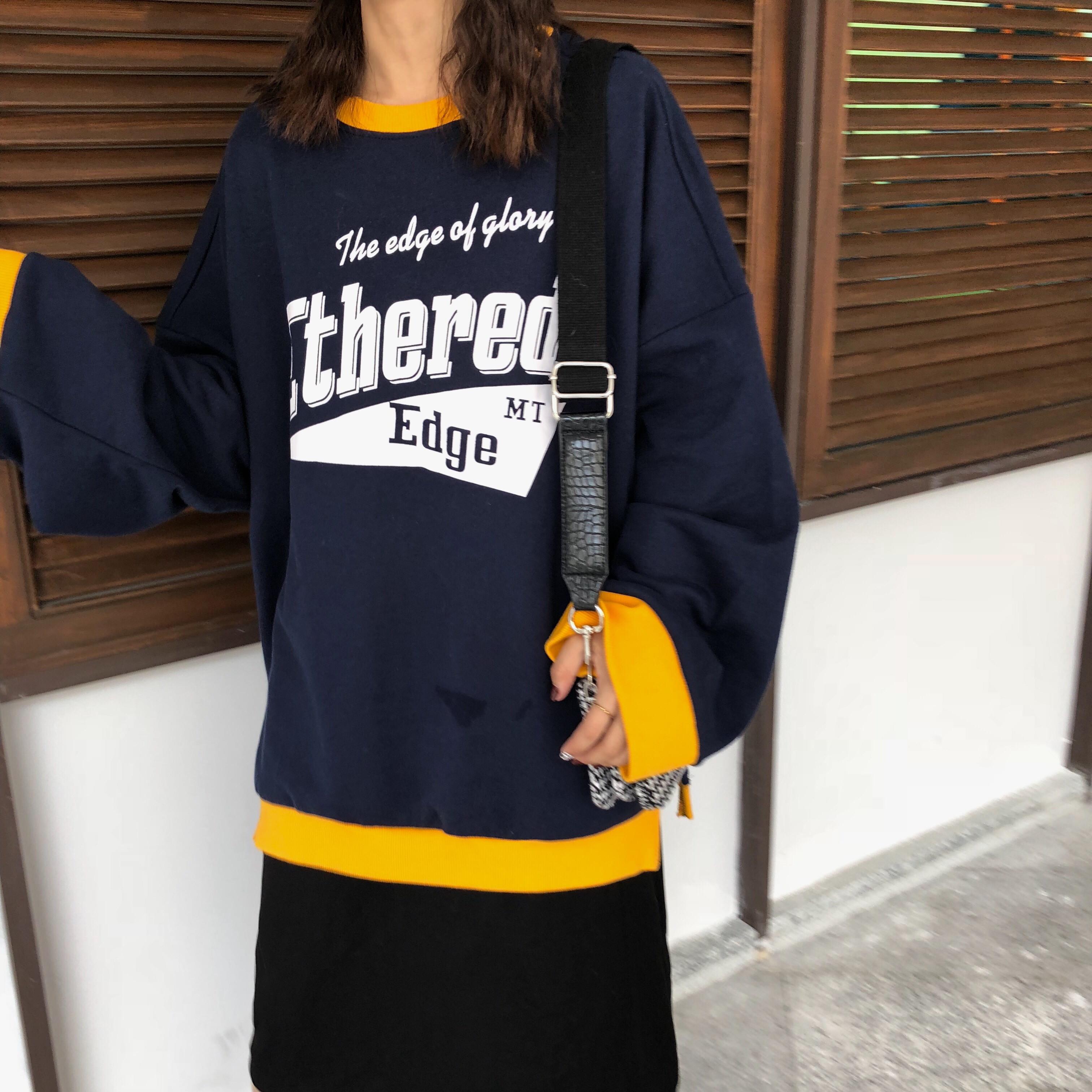 2018新款秋冬韓版中長款寬松撞色字母pp home超火衛衣上衣外套女