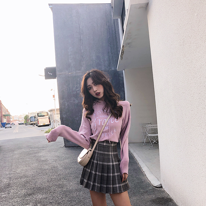 韓版學生百搭針織字母衛衣女2018新款秋季寬松顯瘦連帽套頭上衣潮