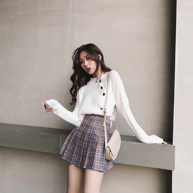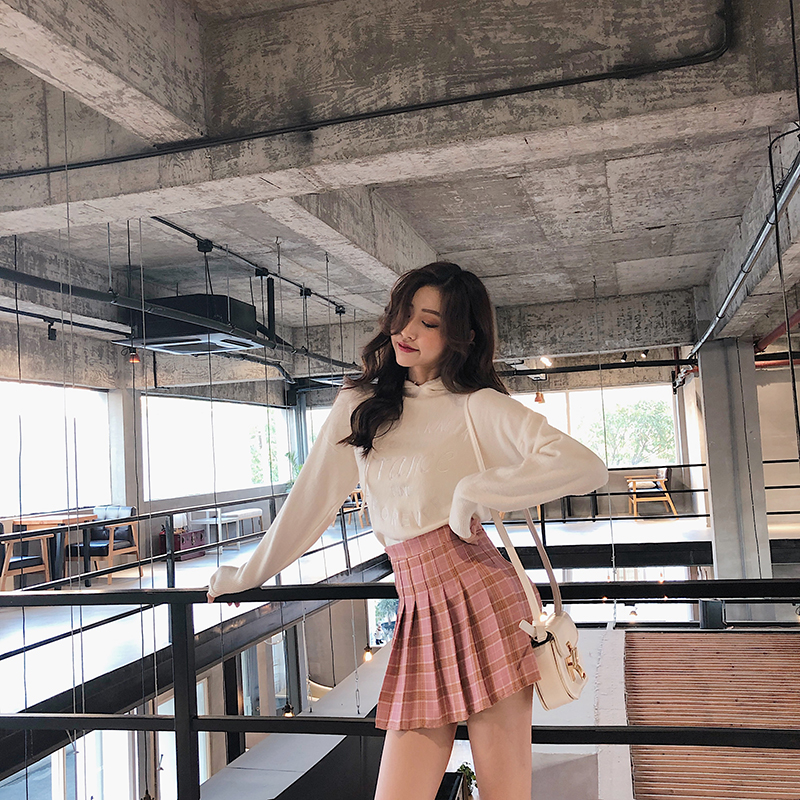 / 復古學院風時尚高腰A字裙韓版顯瘦百褶裙短裙顯瘦百搭格子半身裙
