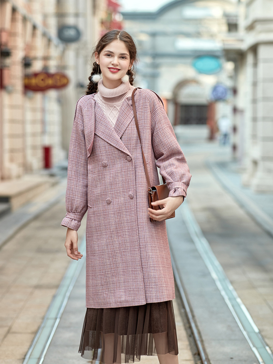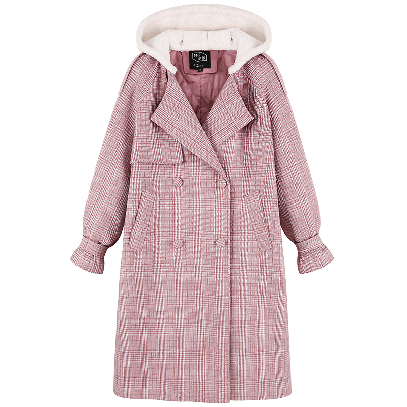 MG小象2018流行格子大衣女冬中長款寬松新款港味復古chic毛呢外套