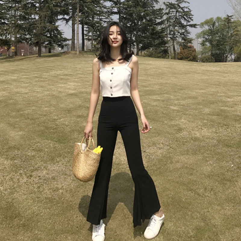 2018春夏新款復古高腰修身顯瘦不規則微喇叭褲女時尚韓版九分褲潮