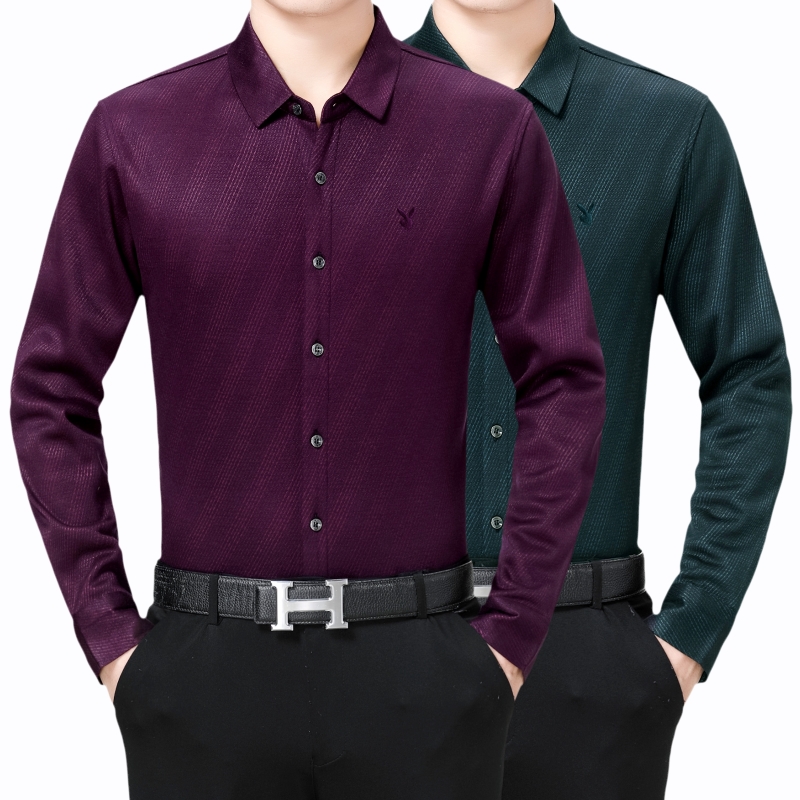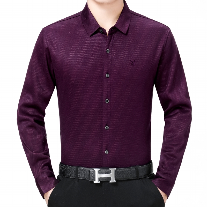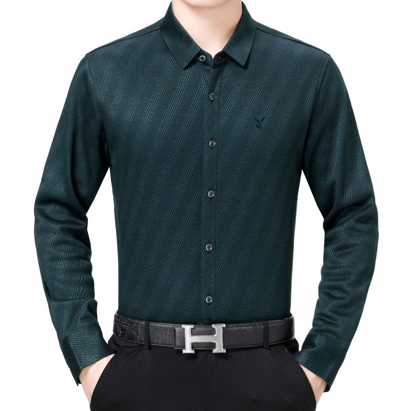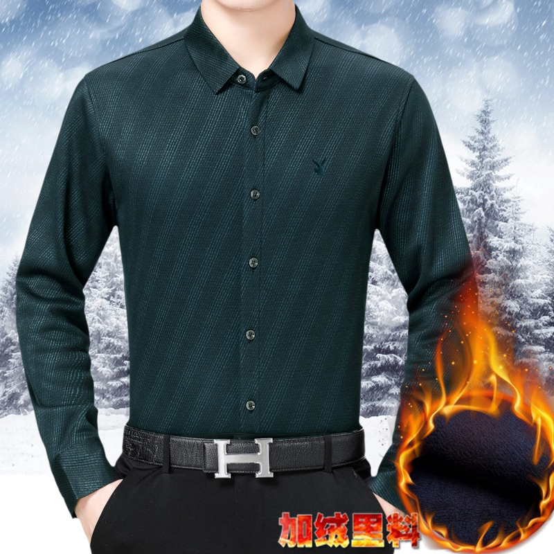 花花公子正品中年男長袖羊絨保暖襯衫商務男裝加絨加厚襯衣冬季1
