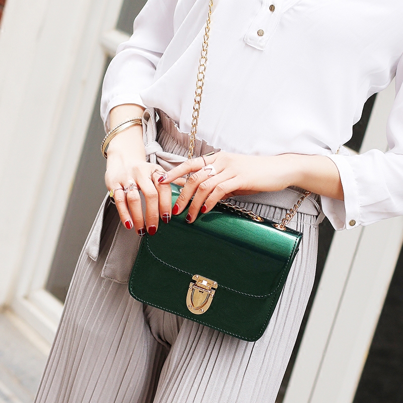 / 包包女新款潮漆皮鏈條小方包韓版單肩女包小包百搭斜挎果凍包