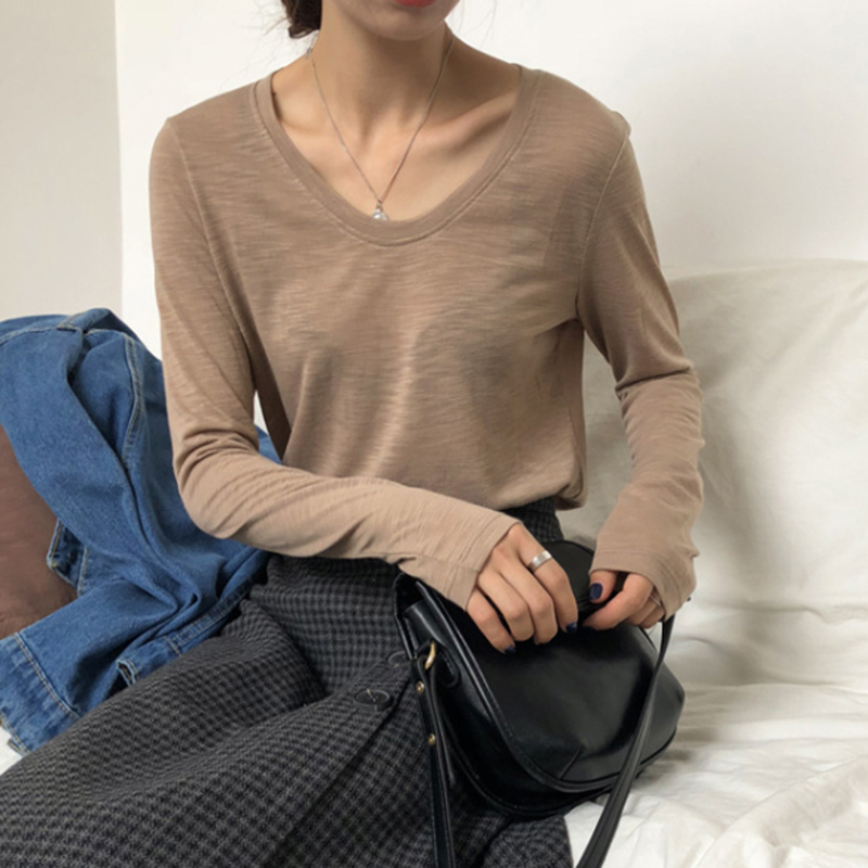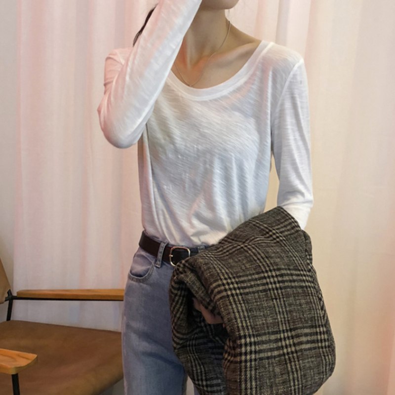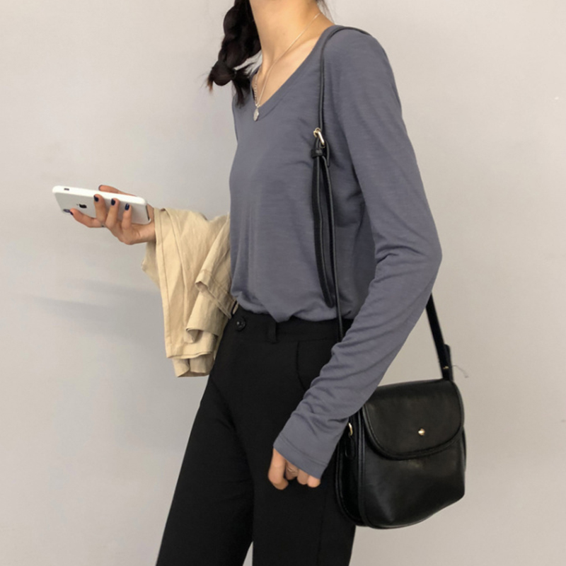 黑色t恤衣服女秋裝2018新款寬松休閑長袖圓領打底衫學生基礎上衣