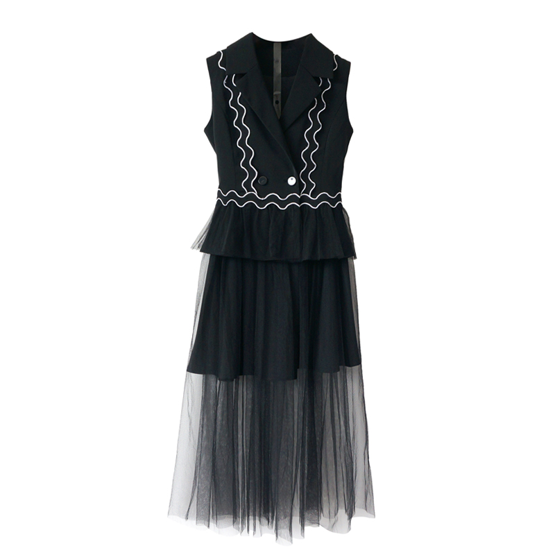S秀時尚氣質顯瘦兩件套女裝2018夏季新款拼色上衣網紗半身裙套裝