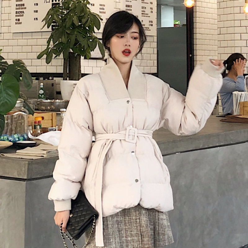 / 冬季加厚棉服女棉襖2018新款系帶收腰顯瘦外套學生長袖面包服上衣