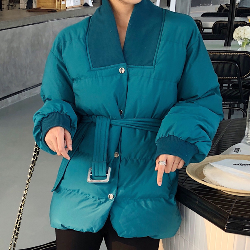 冬季加厚棉服女棉襖2018新款系帶收腰顯瘦外套學生長袖面包服上衣