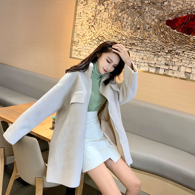 新款韓版百搭中長款寬松加厚開衫長袖復古chic氣質秋冬拉鏈外套潮
