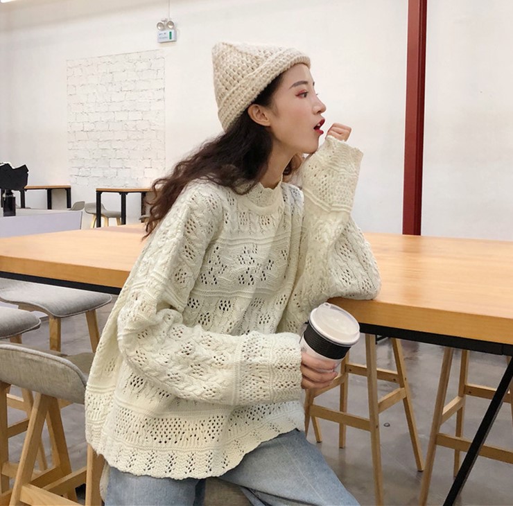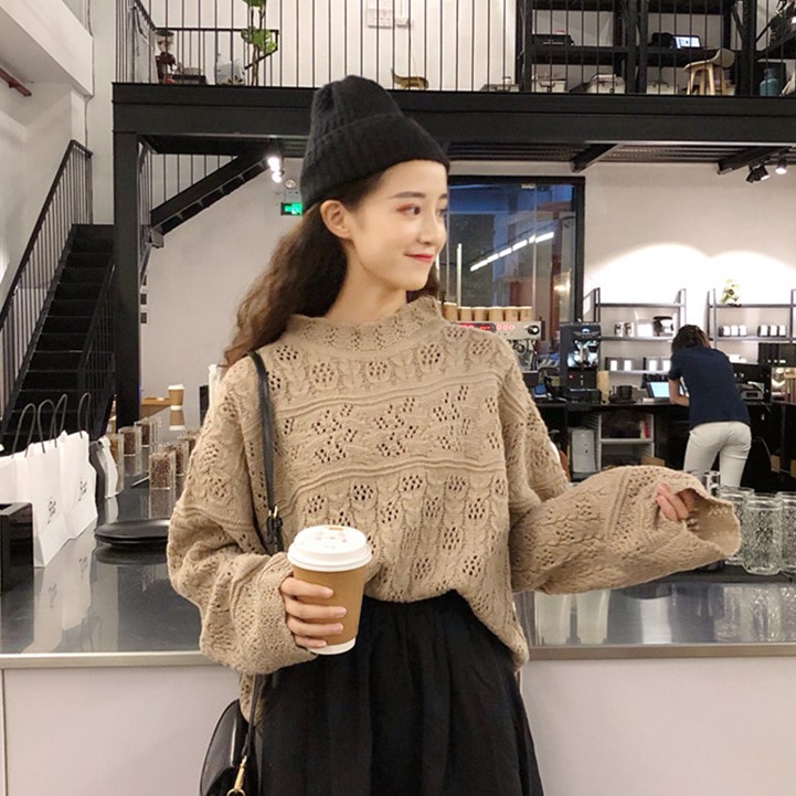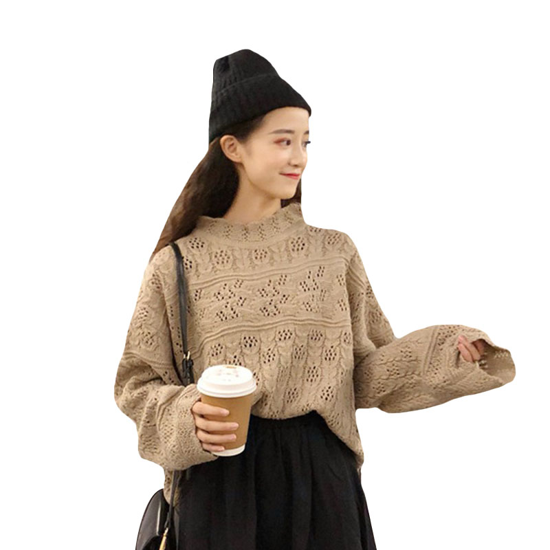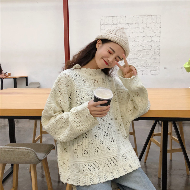 / 秋季韓版chic復古鏤空半高領針織衫寬松慵懶風網紅套頭毛衣外套女