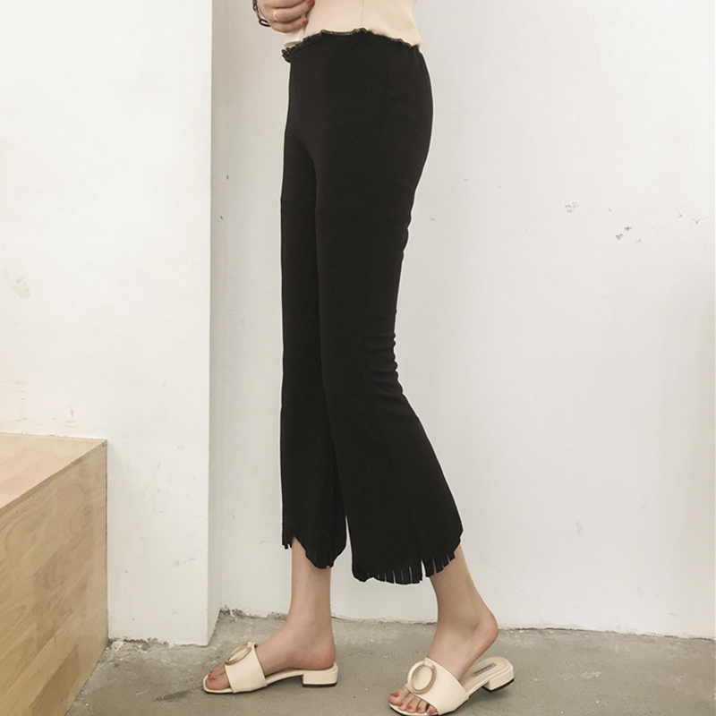 / 休閑褲女夏2018新款韓版女裝學生百搭純色高腰顯瘦顯腿長微喇叭褲