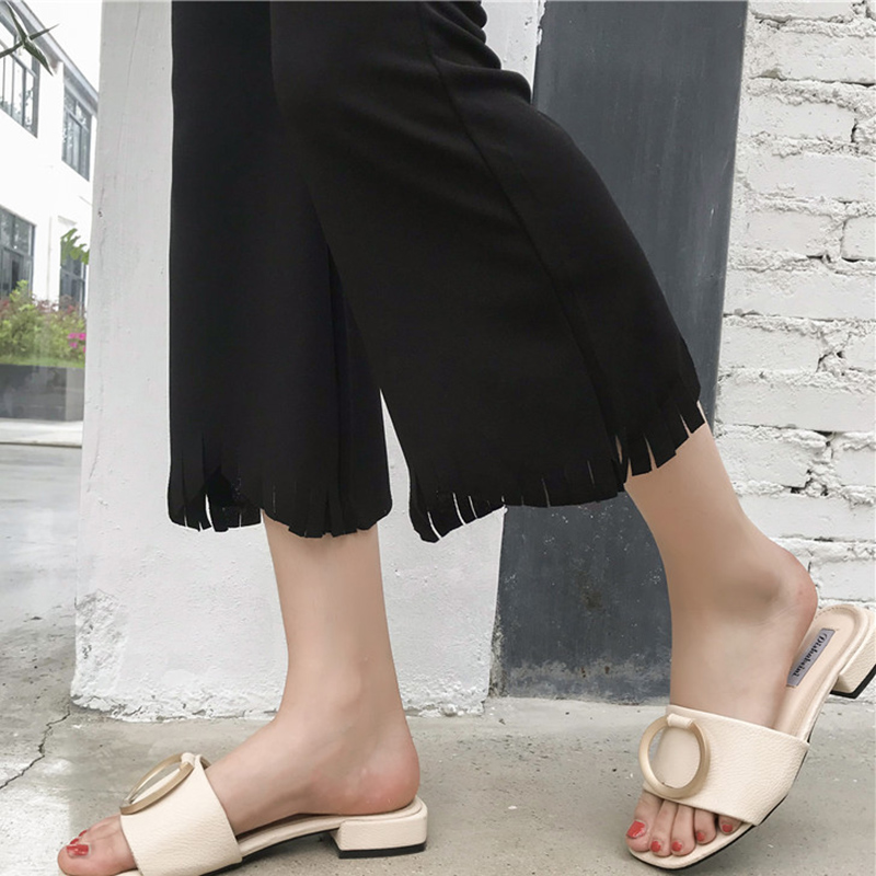 休閑褲女夏2018新款韓版女裝學生百搭純色高腰顯瘦顯腿長微喇叭褲