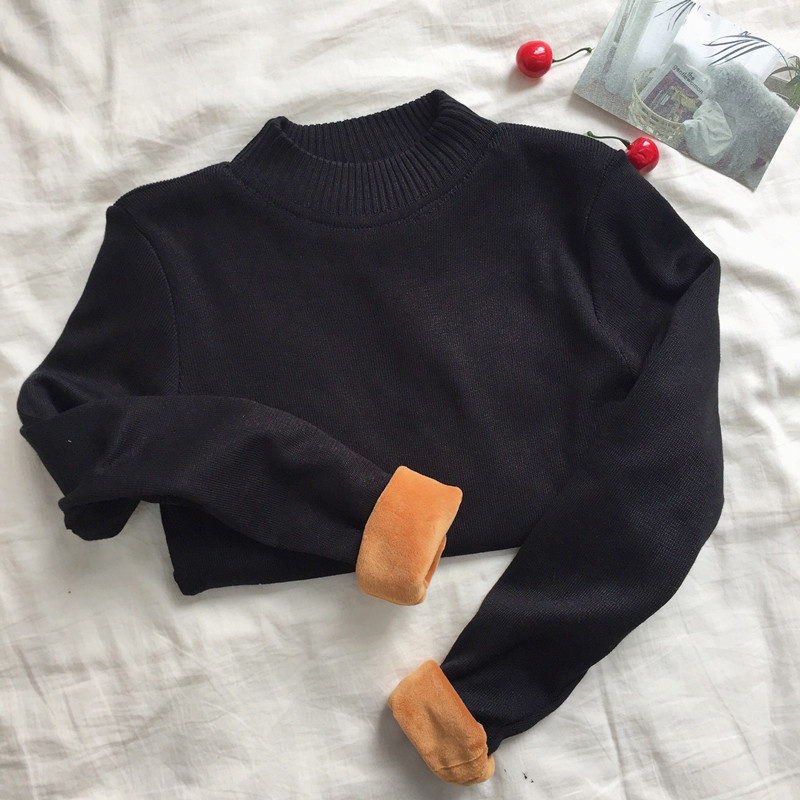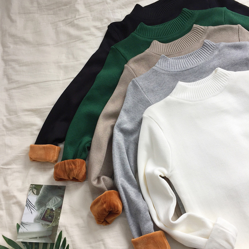 加絨加厚毛衣女半高領針織打底衫秋冬裝新款修身套頭長袖保暖上衣