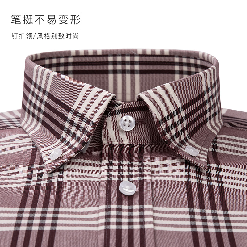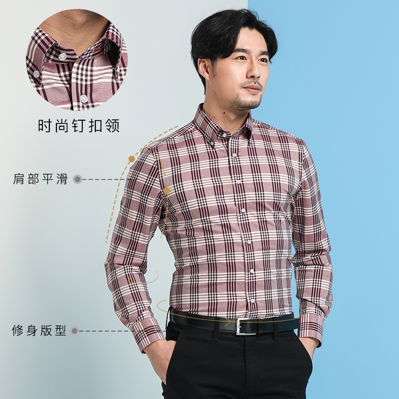 秋季格子男士襯衫長袖純棉免燙經典格紋修身韓版青年男士商務休閑