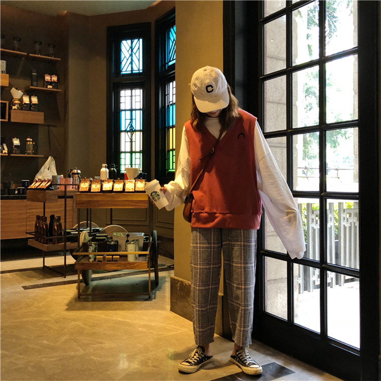 杏色馬甲單件|紅色馬甲單件|粉色格子褲單件|黃色格子褲單件