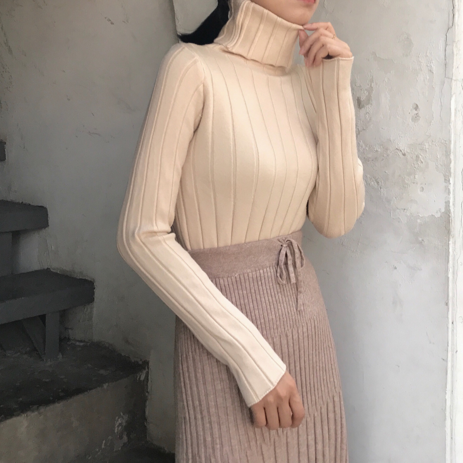 秋裝女2018新款時尚百搭韓版修身顯瘦中長款純色針織魚尾半身裙潮