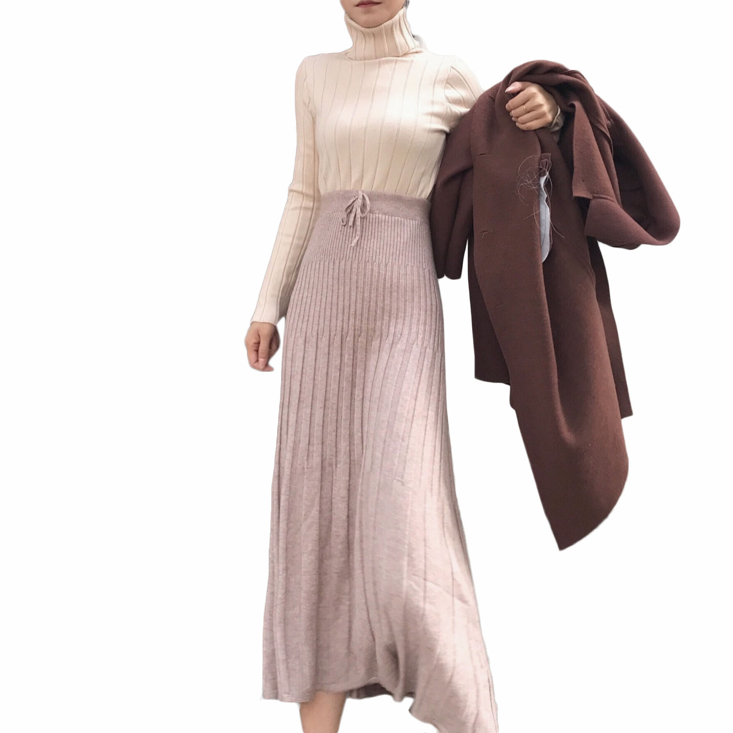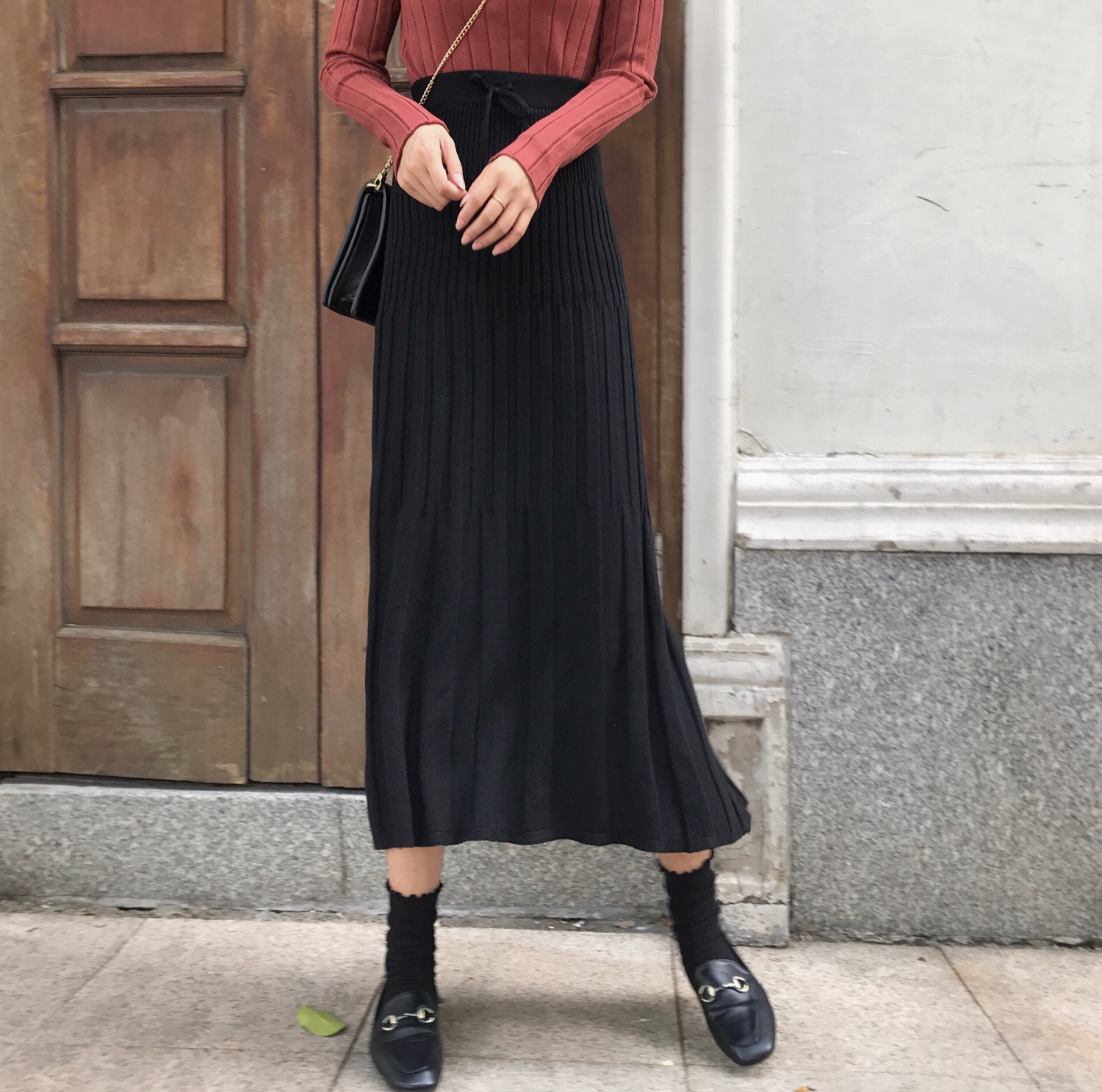 / 秋冬新款溫柔風高腰百褶包心紗針織半身裙高腰復古韓版包臀長裙子