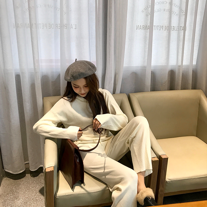 新款韓版寬松顯瘦長袖套頭上衣松緊腰直筒九分褲時尚套裝兩件套女