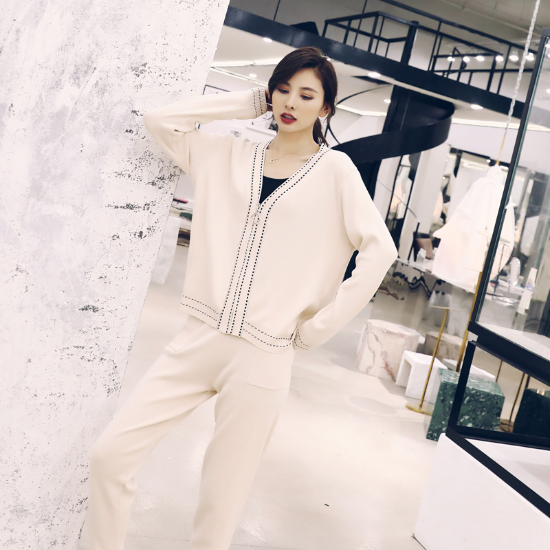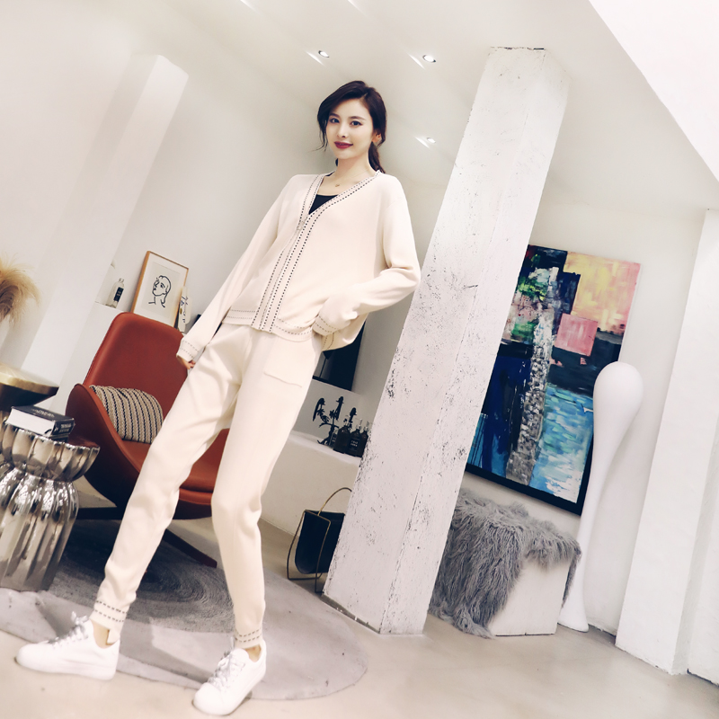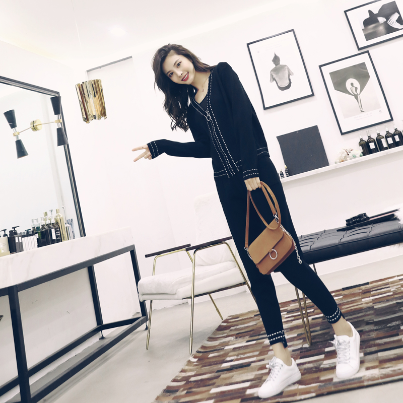 2018秋季新款針織毛衣套裝女時尚顯瘦小腳褲網紅休閑運動兩件套潮