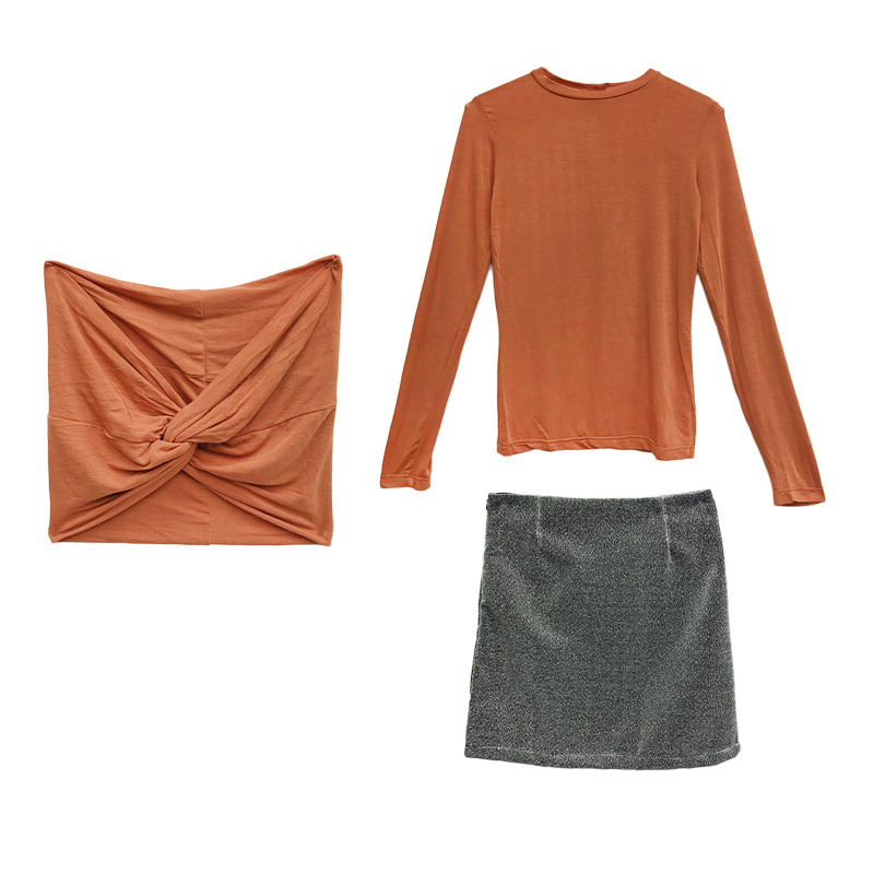 黑色裙|銀色裙|桔紅色上衣|白色上衣|粉紅色上衣|黑色上衣