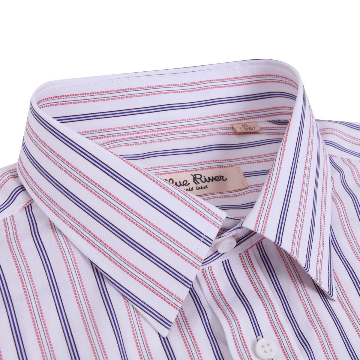 / 藍河男士長袖商務紳士粉色條紋襯衫全棉修身免燙襯衣秋季新品男裝