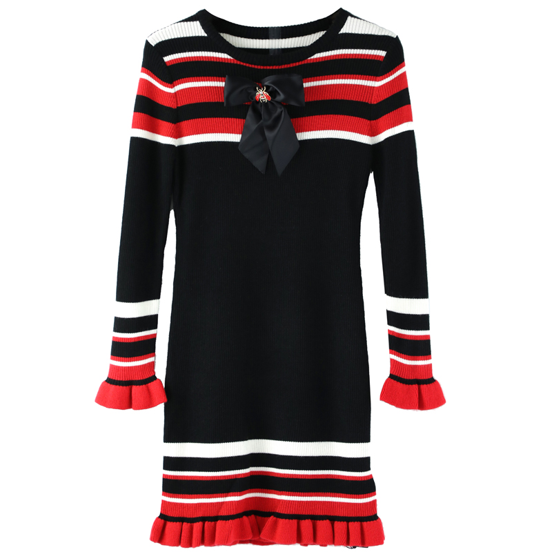 早秋新款女裝2018緊身針織秋冬打底連衣裙修身中長款長袖秋季裙子