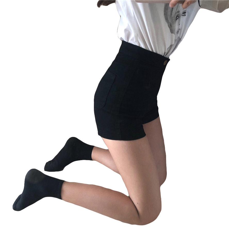 / 秋裝女2018新款紐扣緊身彈力純色熱褲純棉包臀褲顯瘦白色短褲女潮