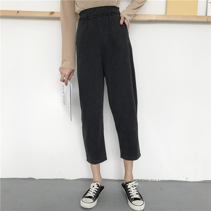 秋裝女2018新款高腰顯瘦毛呢休閑褲九分西裝褲學生寬松純色直筒褲