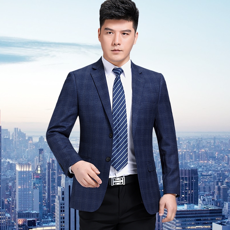 / 2018春裝新款品牌中年男士羊毛西服休閑男裝上衣格子單件西裝外套