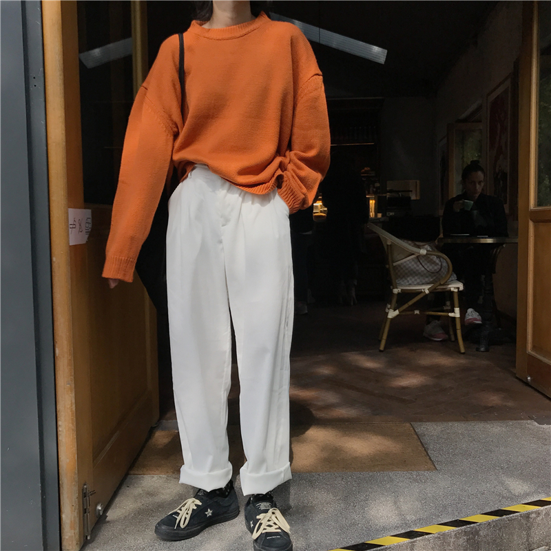 2018新款秋冬女裝韓版松緊腰燈芯絨長褲寬松闊腿褲休閑褲學生褲子