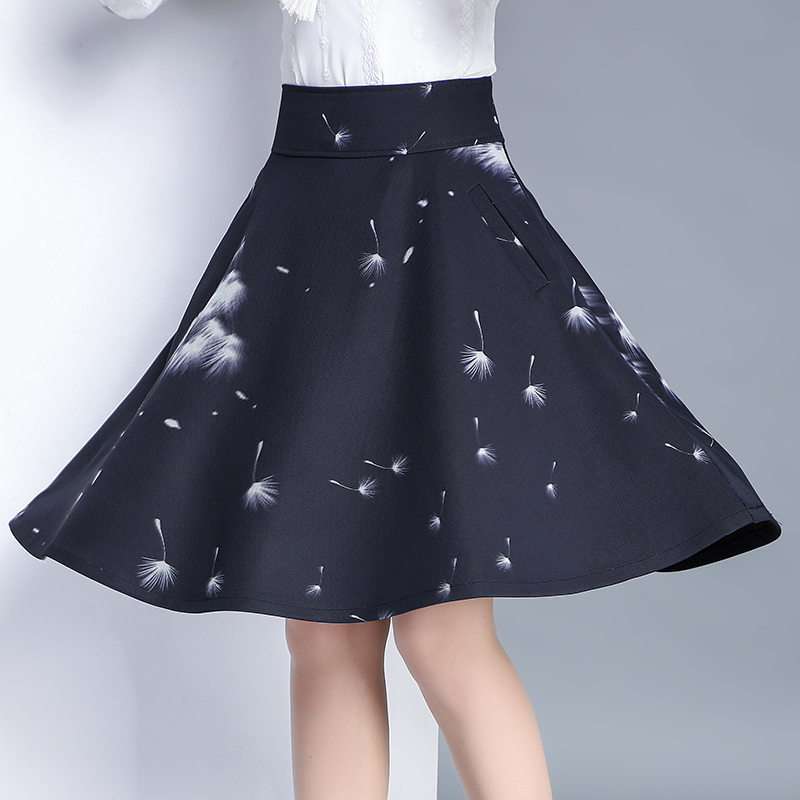 春夏季新款印花半身裙女a字裙高腰中長款長裙傘裙百褶裙