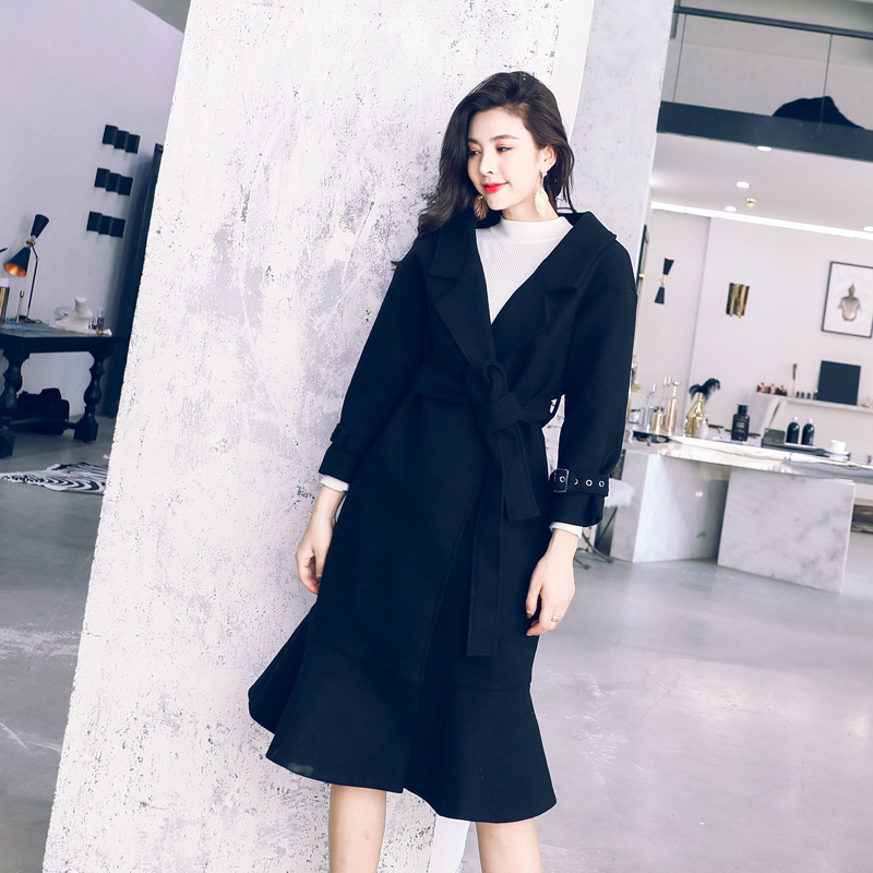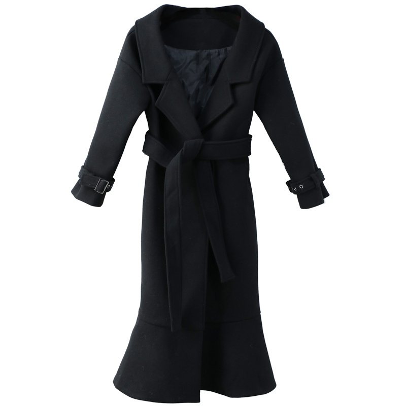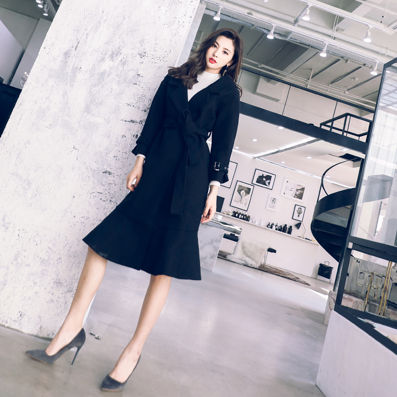 名媛氣質2018直筒大衣秋冬季新款女裝中長款毛呢純色西裝領外套