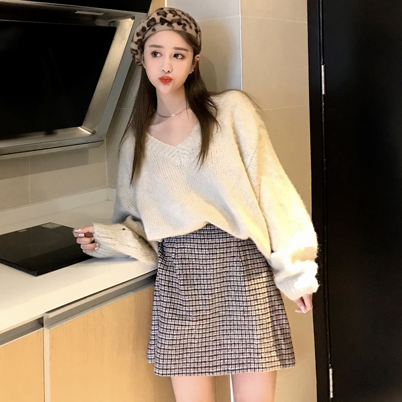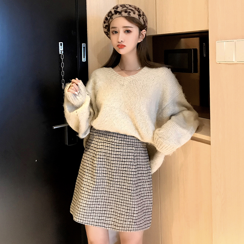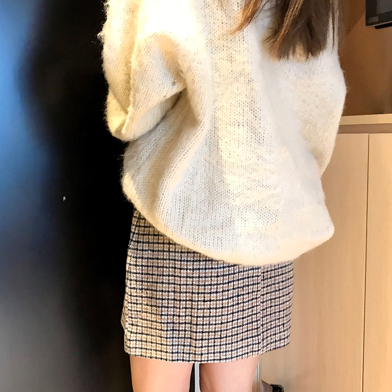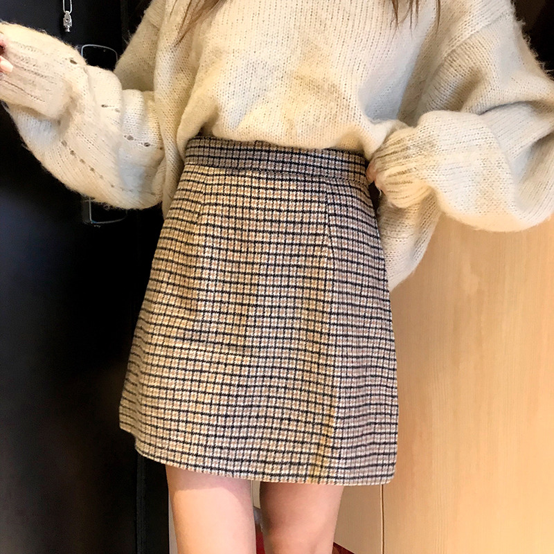 / 港味chic毛呢半身裙2018秋冬裝新款復古格子A字裙高腰顯瘦包臀裙