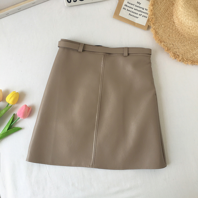 / 秋裝韓版PU皮短裙子女裝新款氣質高腰包臀裙修身黑色a字半身裙女