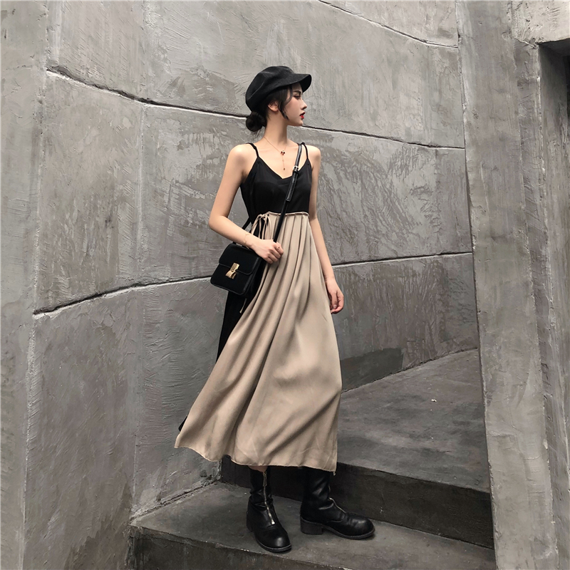 / 新款韓版時尚套裝早秋長袖黑色chic襯衫小香風吊帶連衣裙兩件套女