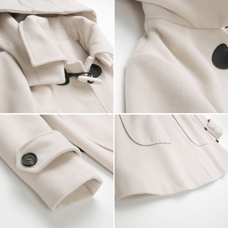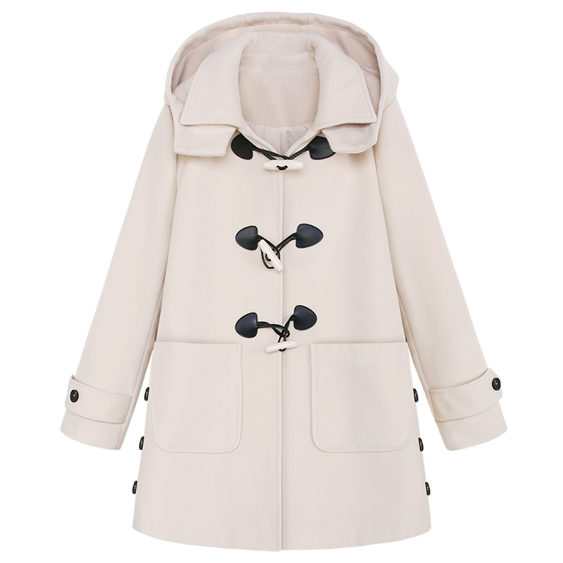 MG小象牛角扣毛呢外套女中長款純色上衣秋冬2018新款甜美連帽大衣