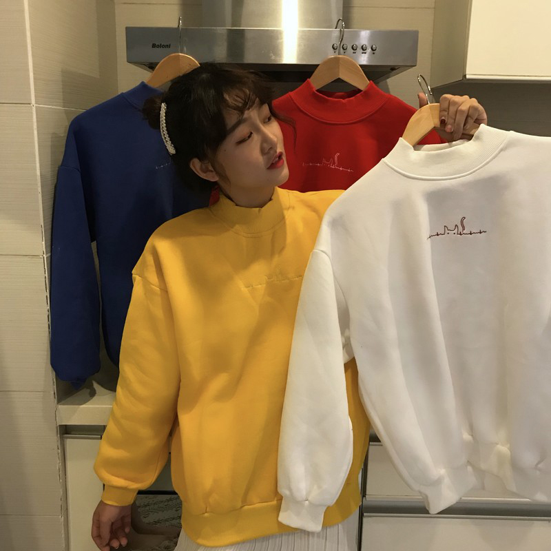 pp home長袖加絨衛衣女秋冬裝2018新款韓版學生寬松字母刺繡外套