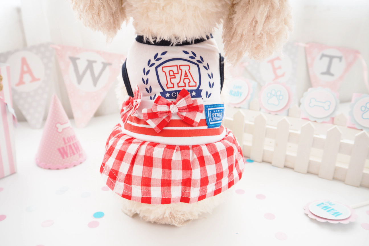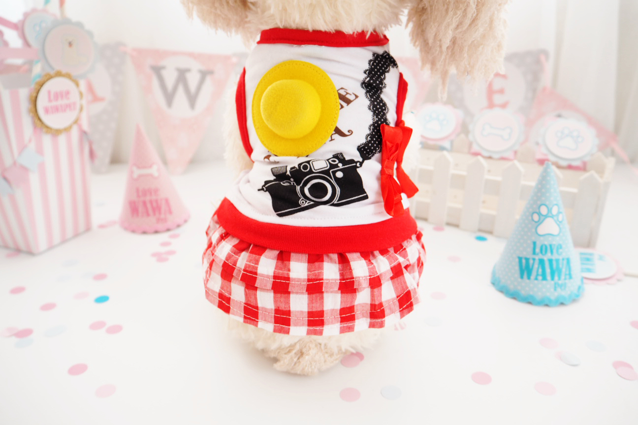 / 格紋度假系列寵物泰迪狗狗衣服春夏款貴賓犬貓咪比熊裝情侶