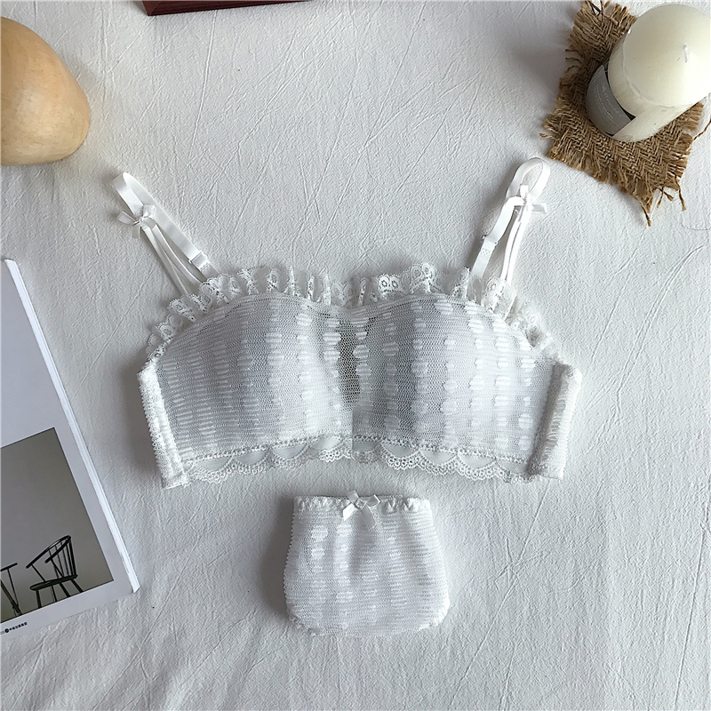 / 夏季無鋼圈防滑薄款透氣胸罩聚攏收副乳性感文胸內衣內褲套裝女士